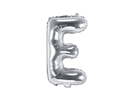 Balon foliowy metalizowany Litera E w kolorze srebrnym, wysokość ok. 35 cm (14).